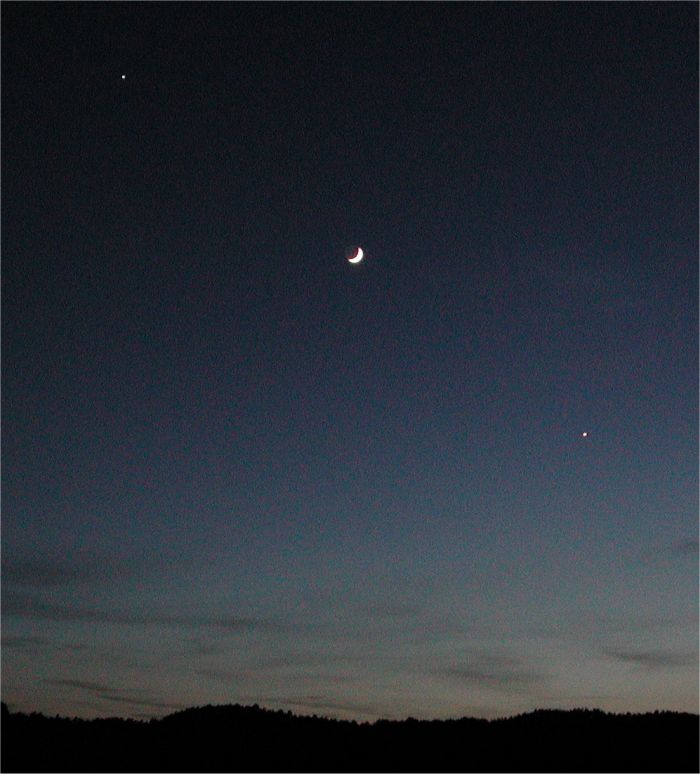 Mond zwischen Jupiter und Venus, 15.5.2002